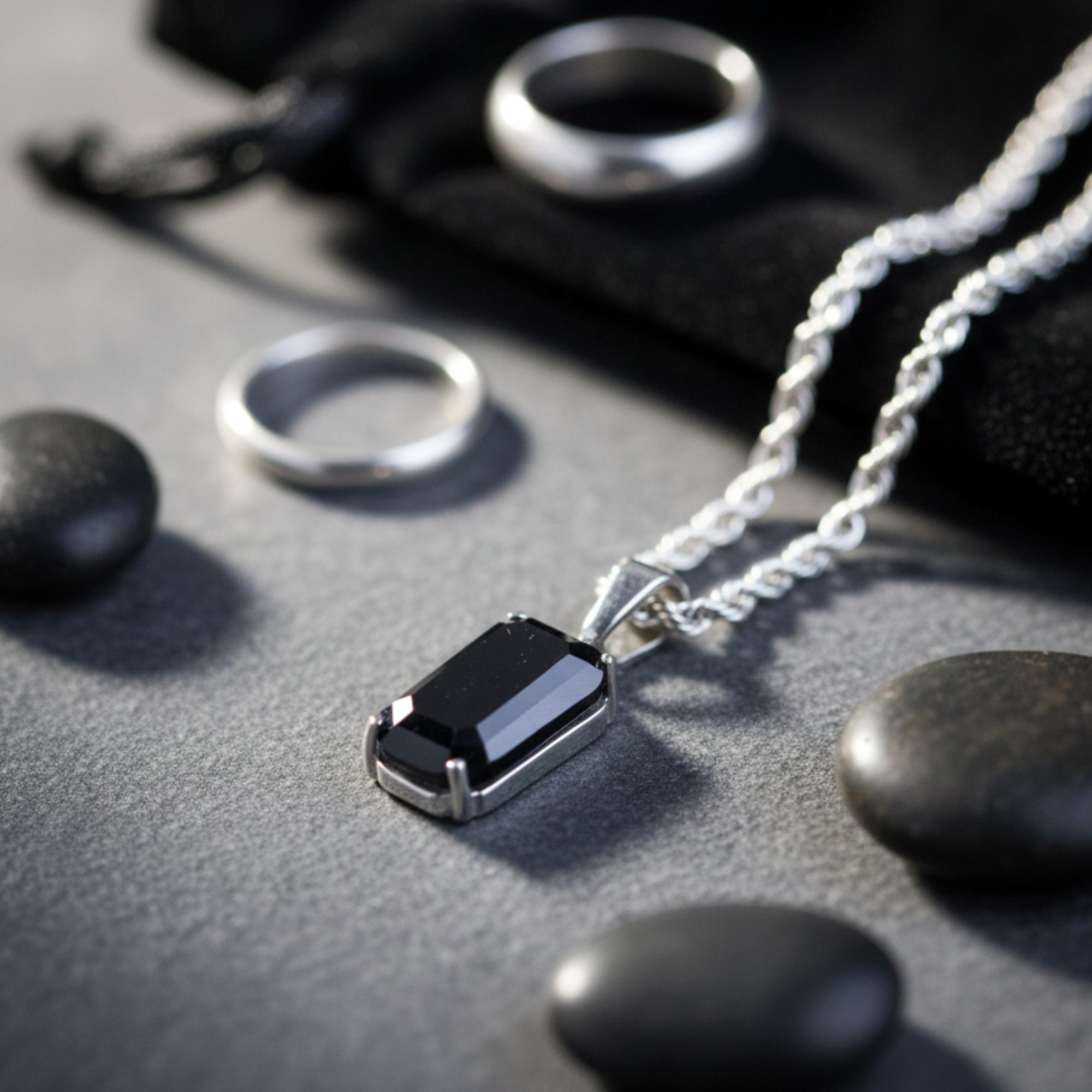 Silver Stainless Steel Black Onyx Men's Pendant Manntara