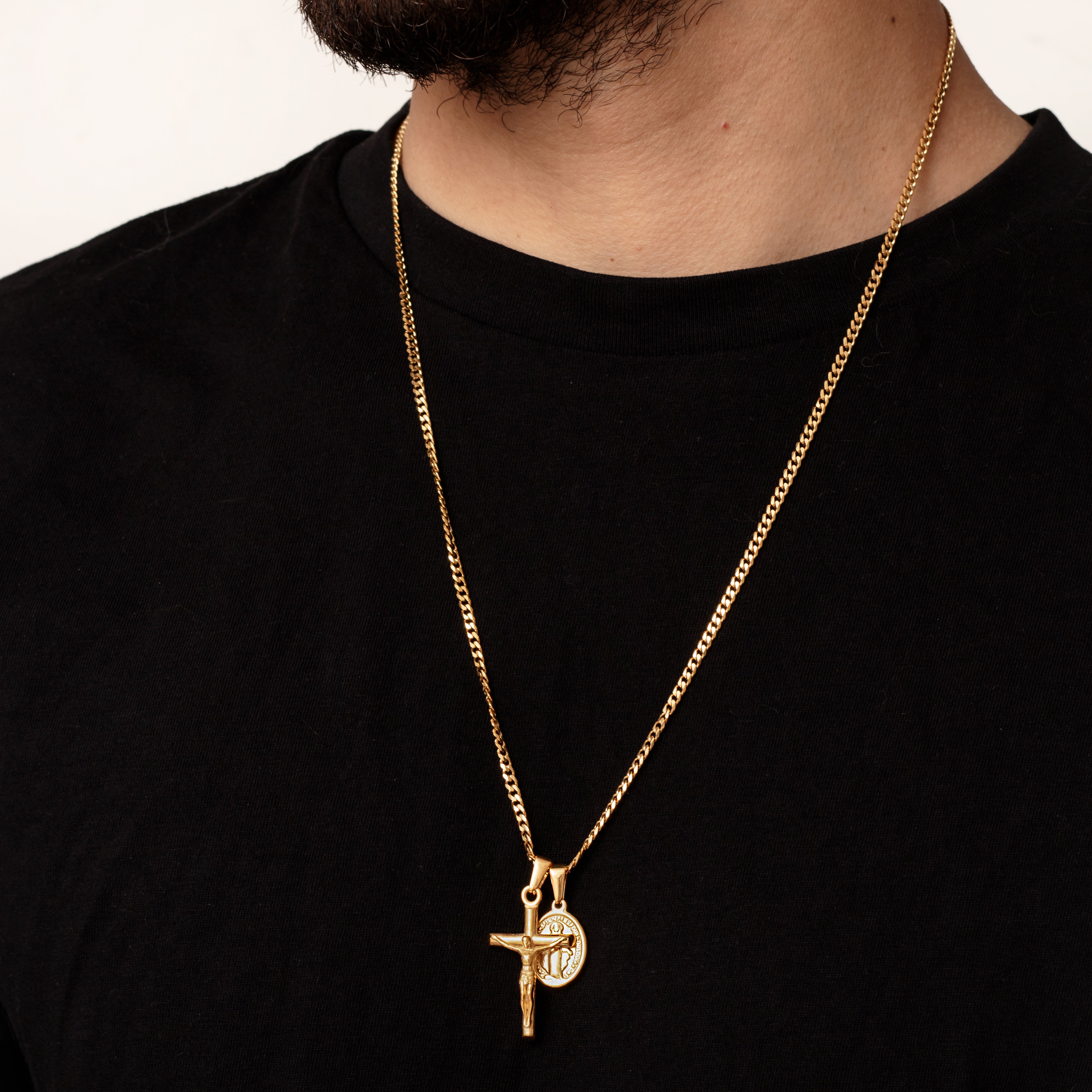 Unisex 18K Gold Plated Miraculous Medal & Crucifix Pendant Necklace Manntara