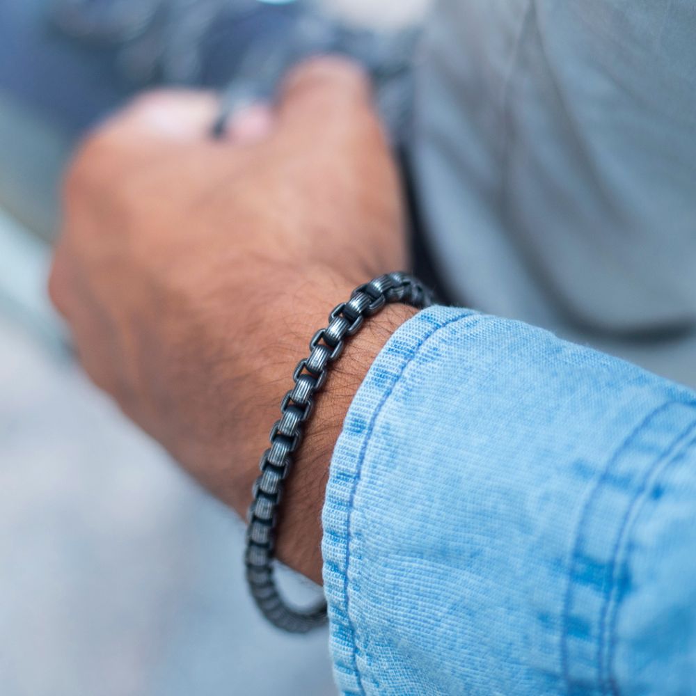 Men's Designer Stainless Steel Black Chain Bracelet Manntara