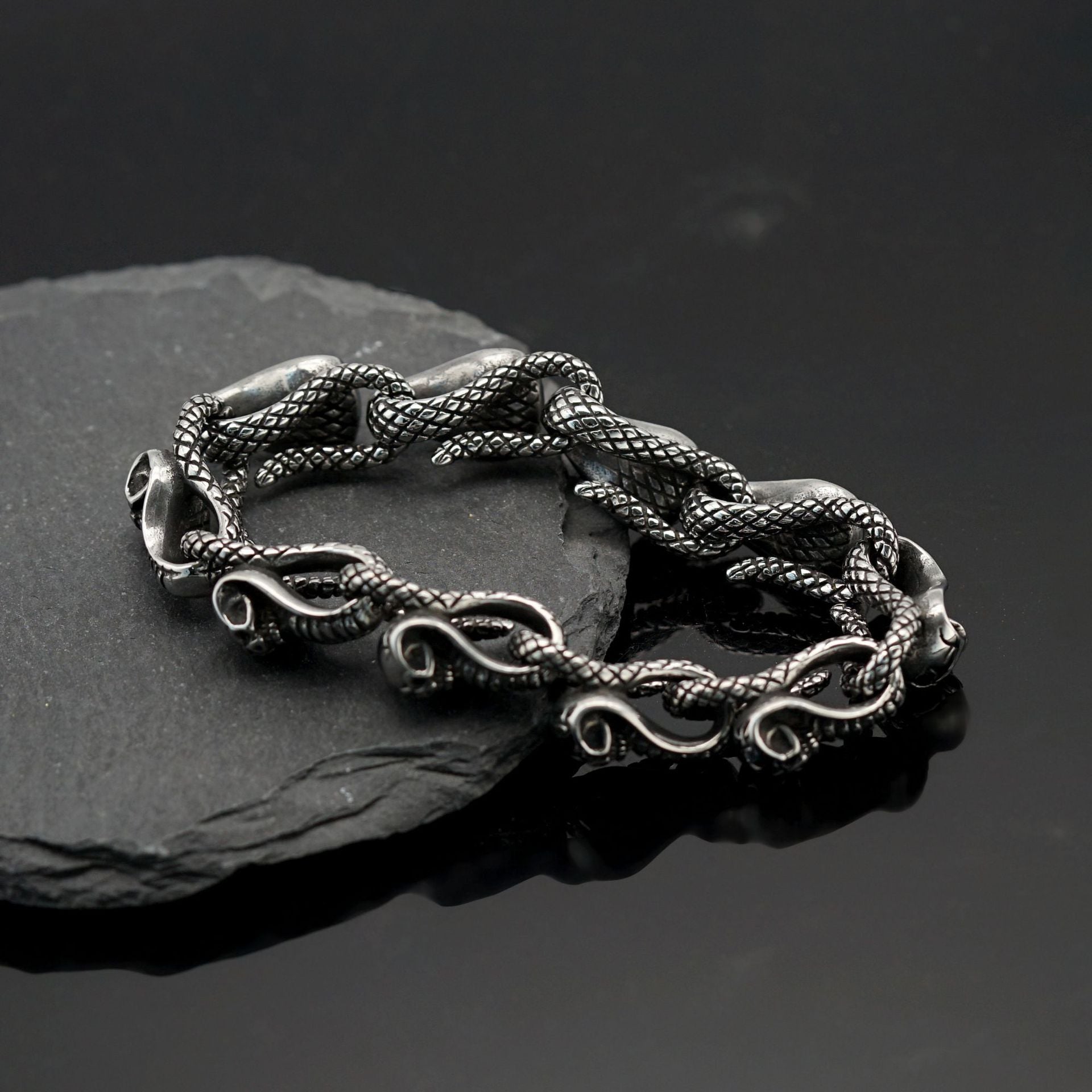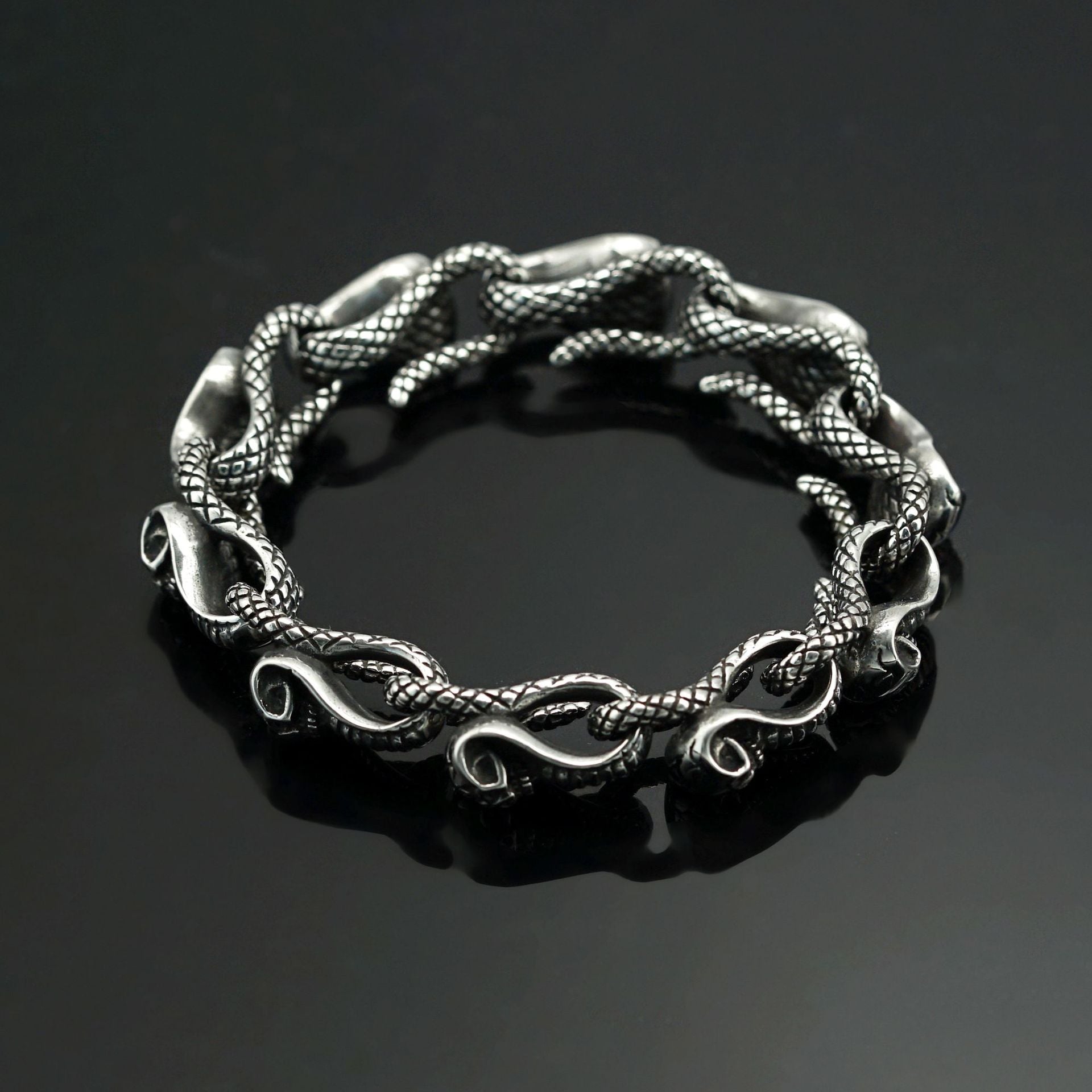 Silver Stainless Steel Gothic Medusa Snakes Bracelet for Men Manntara