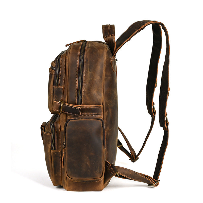 Elaborado con cuero de primera que solo mejora su apariencia con el paso del tiempo. Robusto, elegante, y listo para acompañarlo a diario. Con cremalleras y hebillas en Acero inoxidable 316L para una mayor durabilidad.