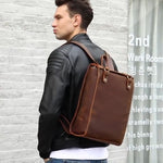 Full-Grain Brown Leather Anti-Theft Retro Backpack for Men and Women