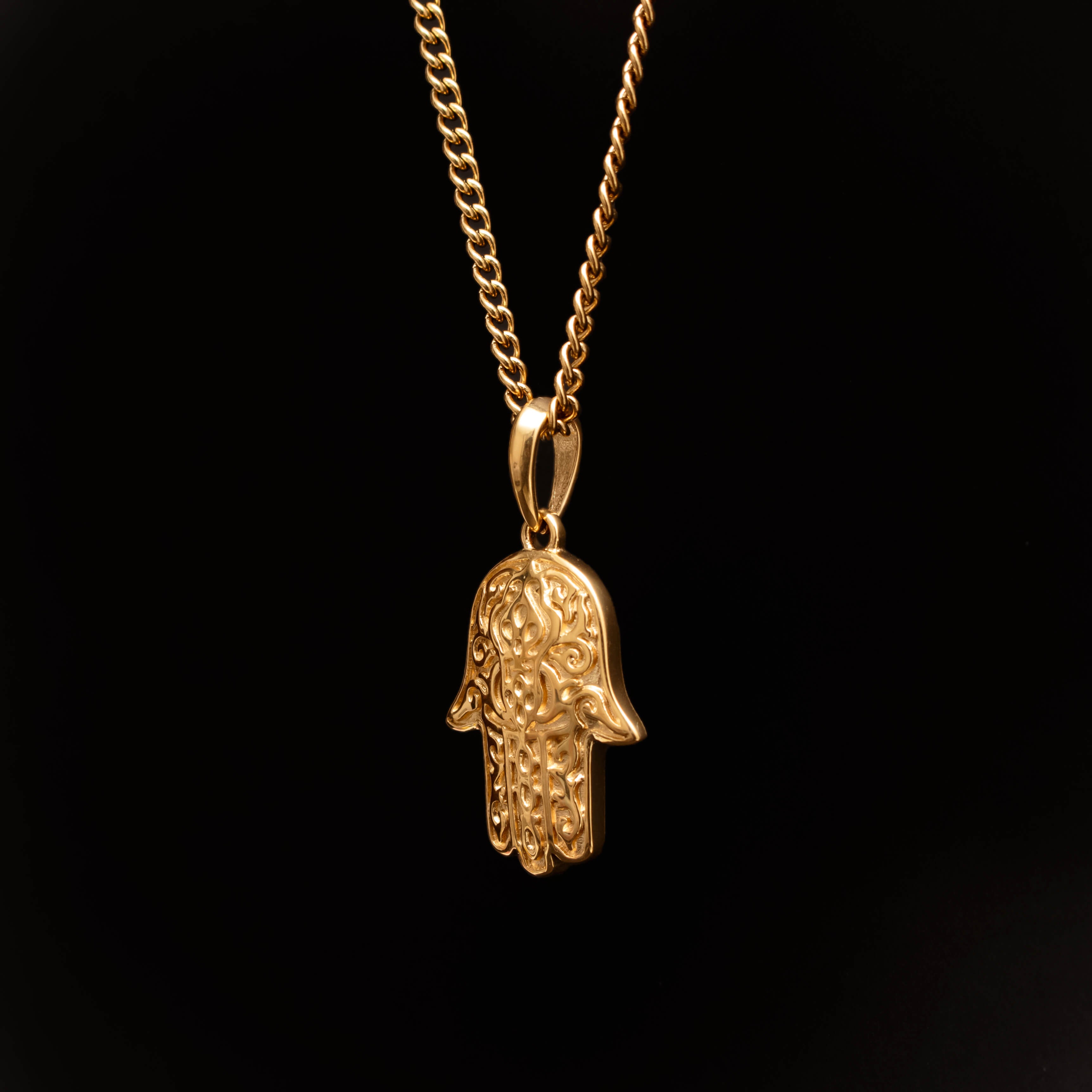 18K Golden Plated Hamsa Necklace of Stainless Steel Manntara