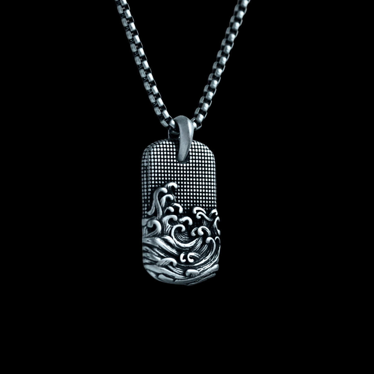 Men's Waves Surfer Necklace  Stainless Steel Silver Pendant Manntara