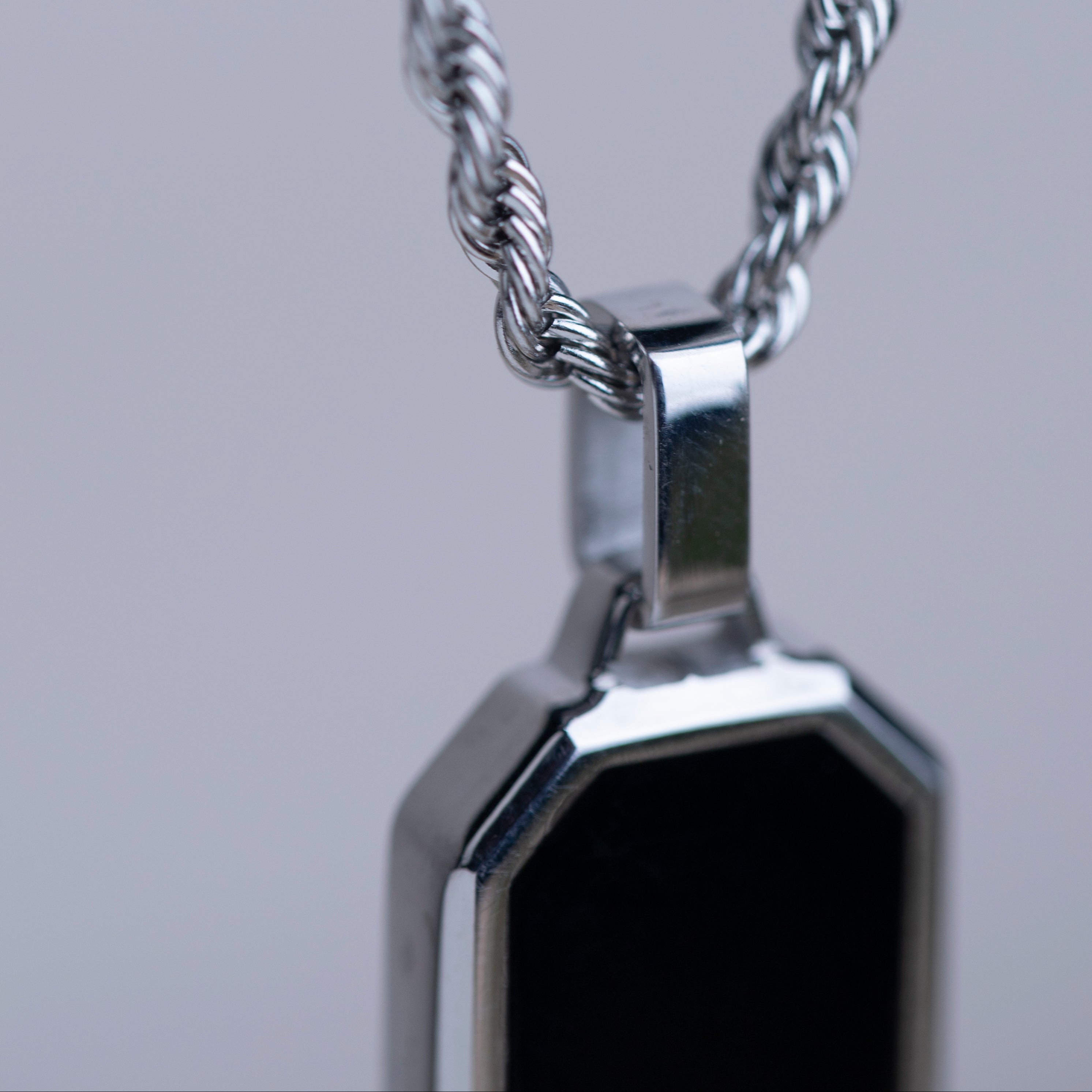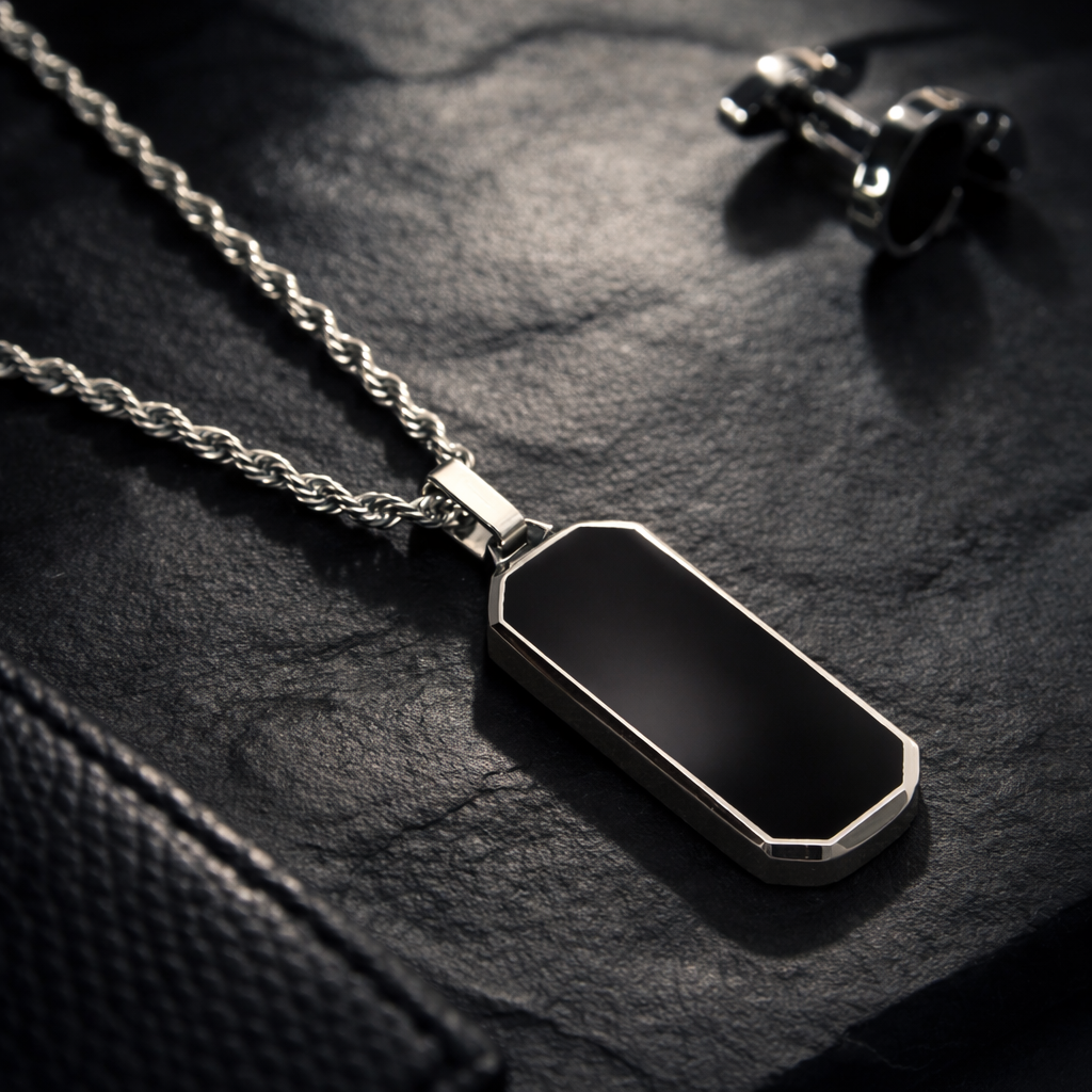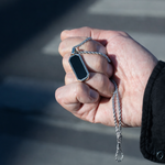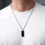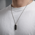 Silver Stainless Steel Black Onyx Rectangular Men's Necklace Manntara