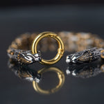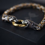 Sköl y Hati inspiraron esta robusta pulsera vikinga dorada. Diseñada para destacar y representar tu lado feroz dondequiera que vayas.