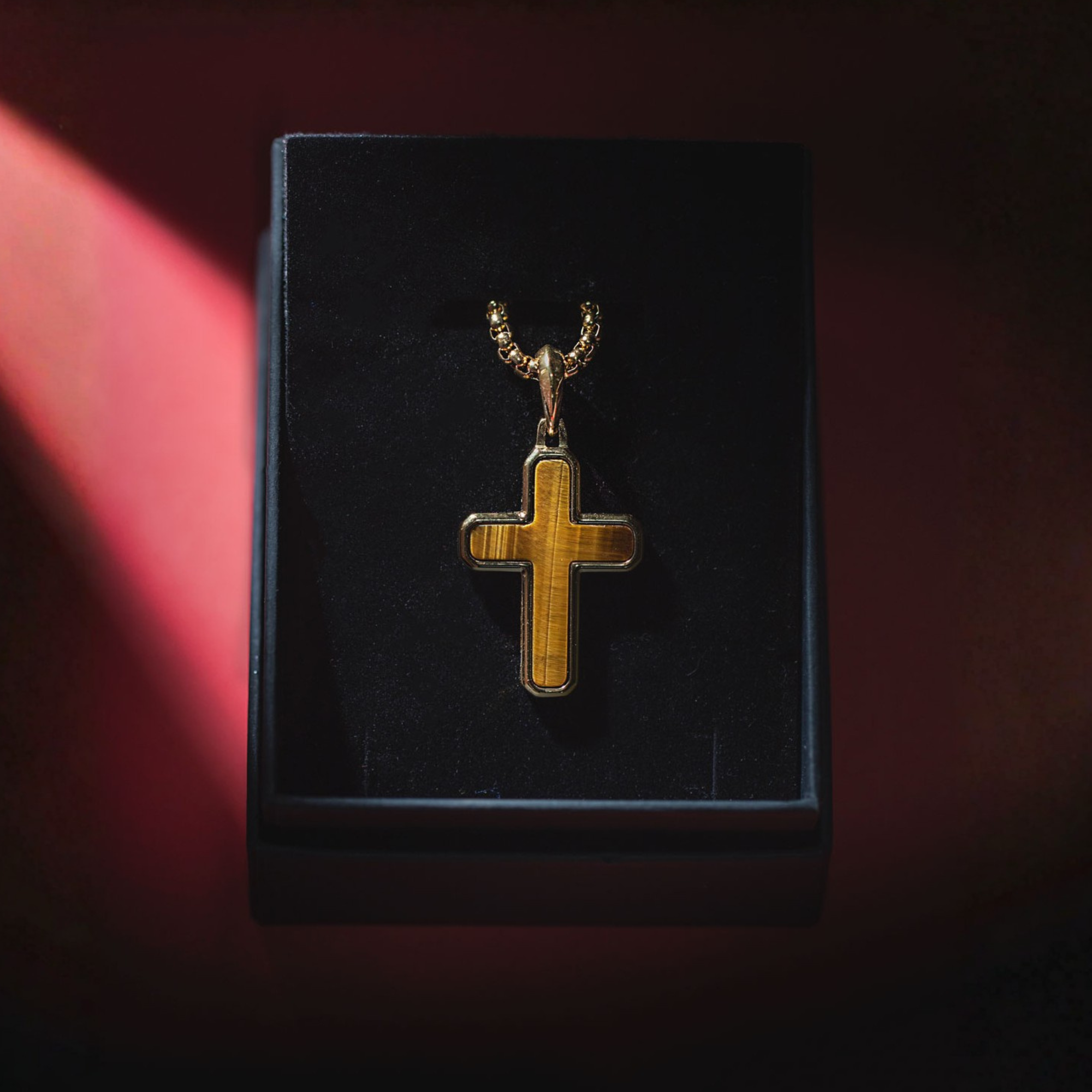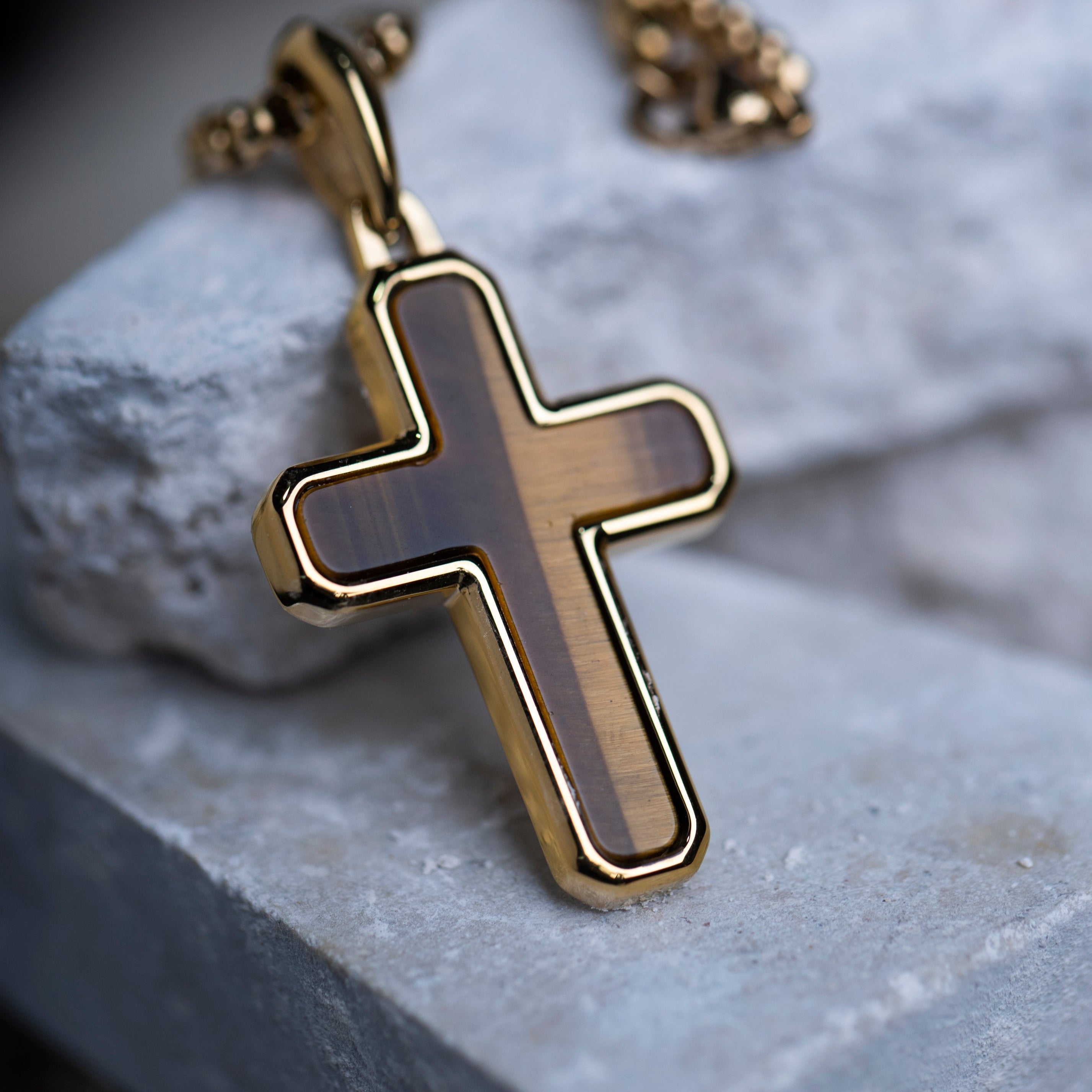 18K Gold-Plated Catholic Cross Necklace of Stainless Steel Manntara
